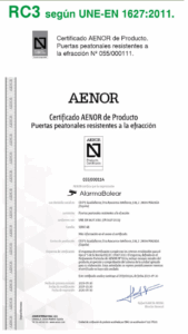 Certificación UNE EN 1627 – Grado 3